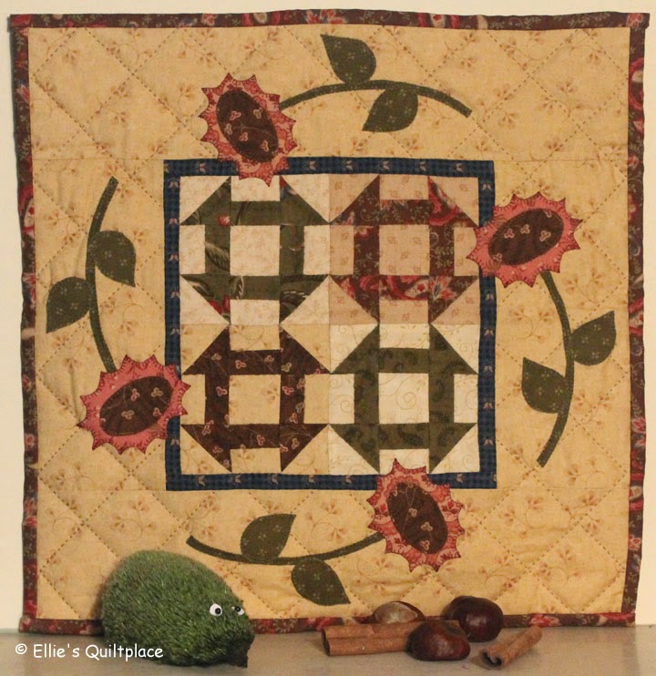 Net als dit mini quiltje trouwens: 'Autumn Glory'. Met zijn patchworkblokjes en geappliceerde bloemen is het één van mijn favorieten.